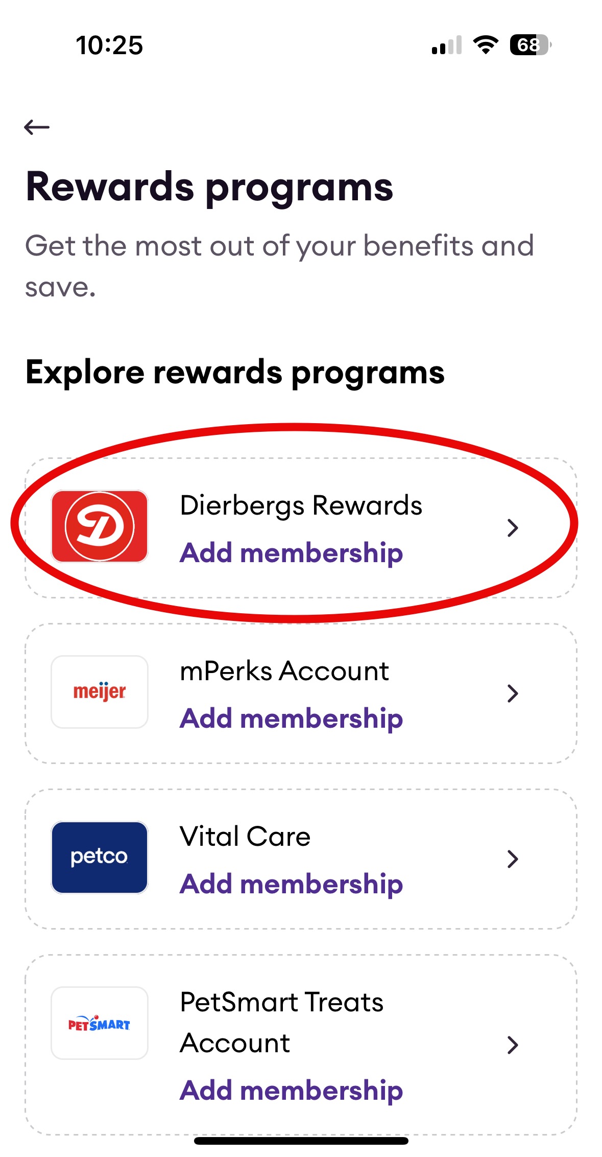 Step 5: Click “Dierbergs Rewards Add membership”
