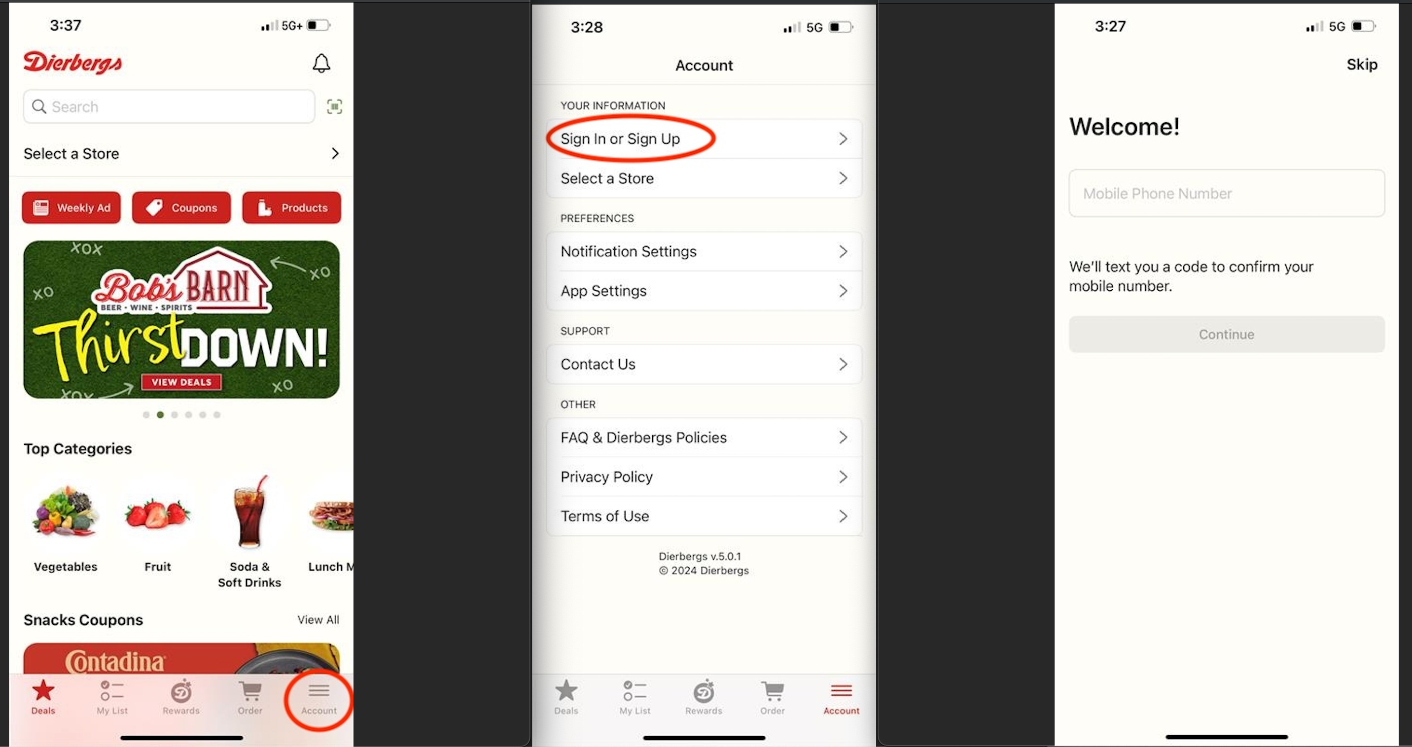 Once you are at the welcome screen, you will enter your mobile phone number that is connected to your Rewards account, it will send you a code to log in and you will be good to go!